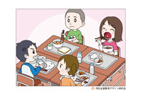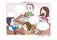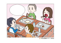 学校の給食で、みんなと違う食事をする子どもがいます。アレルギー体質を持つ子どもが、みんなと違う食事を食べにくそうにしています。それを見た別の子どもたちは、何か言ったり、心配をしたり、不思議そうにしたり、様々なことを感じています。